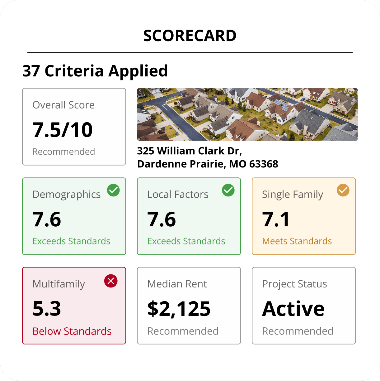 Snapshot of stats and scores tailored to build-to-rent