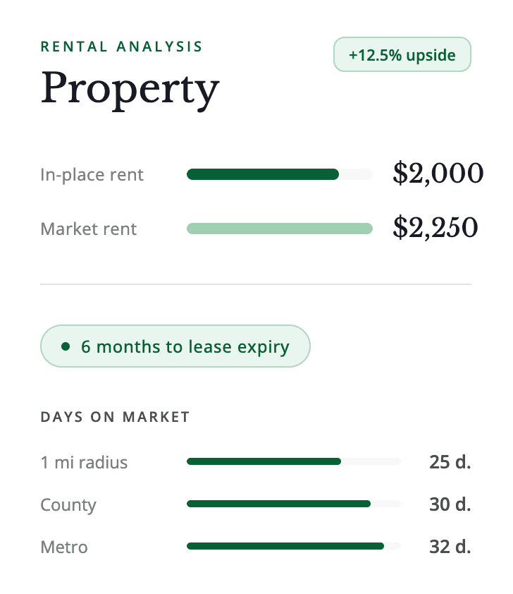 Utilitze advanced comps, lease data, and neighborhood performance metrics